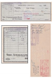 In the above image we see a check for $402 dated March 1938 but upon closer inspection we see that the majority of it was for pages delivered while $130 is marked simply for ‘SUPERMAN’– Siegel and Shuster accepted this price in desperation to see their work in print, assigning all rights and profits from Superman to Detective Comics Inc. along with a contract to produce pages for National (as they had been doing) in a ten year contract which would net them a combined $400,000 – adjusted for inflation that contract which spanned 1937-1947 earned them $6,220,000.
