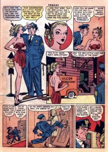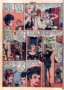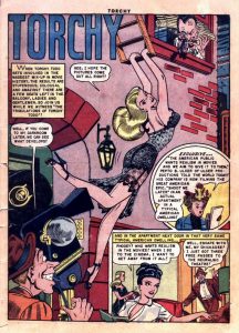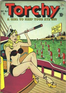 Bill Ward’s TORCHY made her debut in Quality Comics DOLL MAN #8 (Spring 1946), the character soon was given her very own title. Torchy’s biggest charm was that she didn’t see her own charms, needless to say she was popular with GI’s stationed overseas after the war.