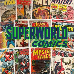 We here at Superworld comics are known for our silly ads and promotions, but we are serious about comic books. Whether you are looking for high-grade-investment comics and art or selling your comic book collection, you can trust our knowledge and experience to get you the best possible deals. We are located in Massachusetts, but we travel the country to see your collection if it is from 1940 to 1975. You can find our live comic book sales via Instagram at @superworld_comics or by phone at 508.829.2259
